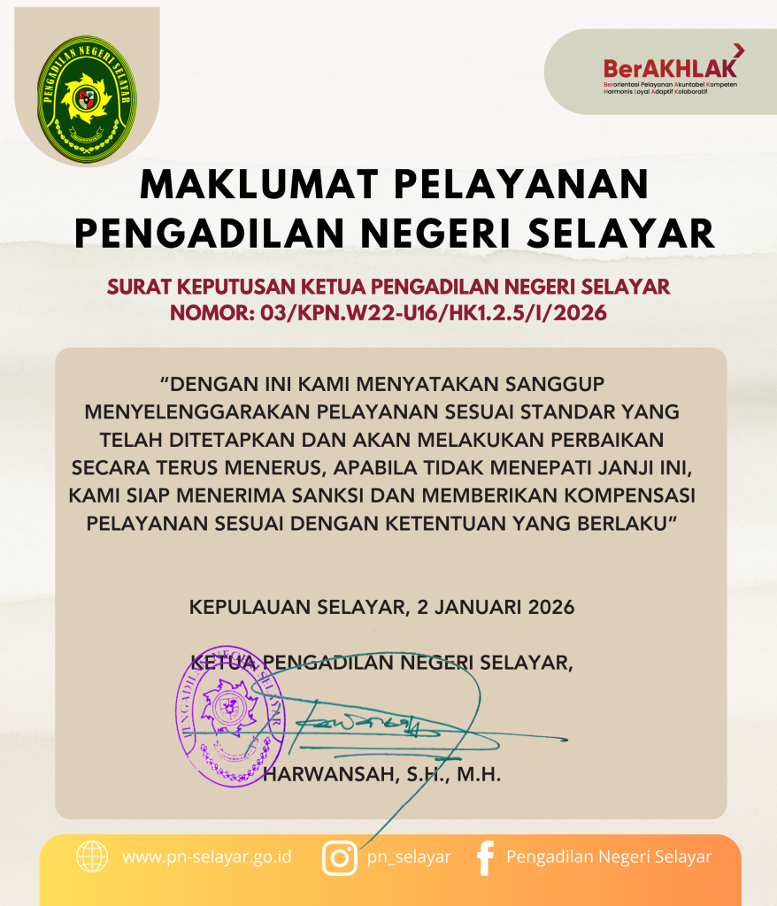 Untuk informasi lengkap mengenai Panjar Biaya Perkara berdasarkan Surat Keputusan Bersama Ketua Pengadilan Negeri Selayar silahkan klik link berikut ini :